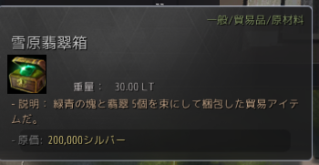 こんにちは!今回は黒い砂漠で昔からある金策「加工貿易」について、2025年現在の収益性を検証してみます。約3年前にやっていた「雪原翡翠箱」を、今やったらどうなるのか、実際に10万個の原材料を加工して試してみました。 1. 「雪原翡翠箱」の原材料と準備 […]