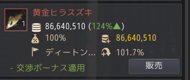 釣れた魚は、最も高値で売れるように貿易システムを利用して売却しました。