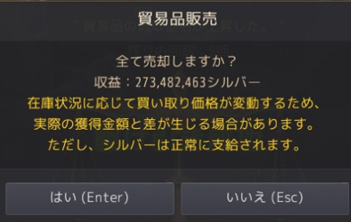 魚の売り方 | 六曹通りで貿易売却 | 貿易レベル名匠28で、44%の交渉ボーナスを適用 |