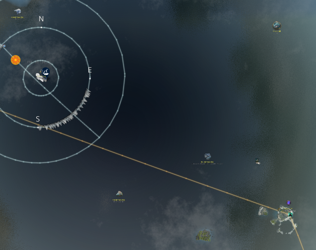 場所がわかりやすいように、カラス商団所有の船舶で釣りしています。オーキルアの目の左上のほうです。