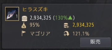 バレンシアだと距離ボーナスが121.1%なので魚の値段が結構変わります。