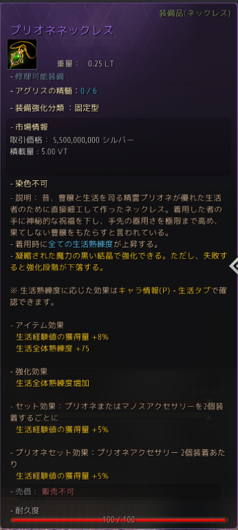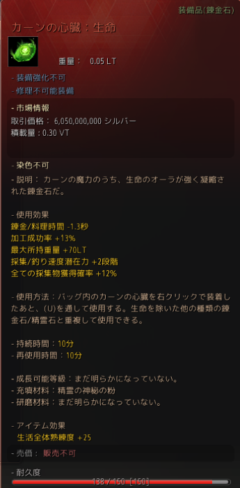 - カーンの心臓:生命:装備するだけで生活熟練度が25上がります。