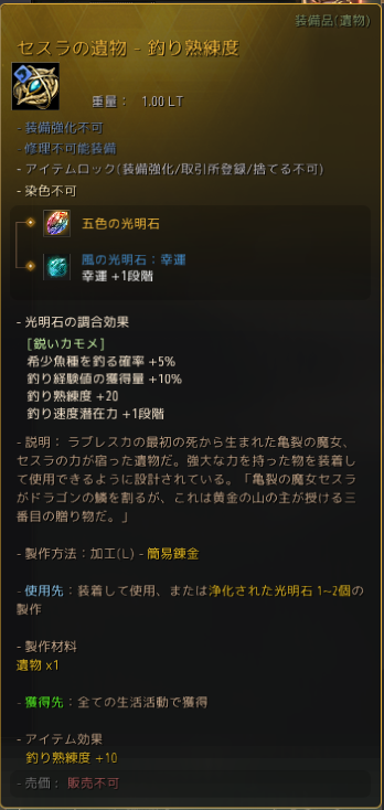 | 中 | 遺物・光明石 | 光明石(神の魚信 or 鋭いカモメ)、経験値/熟練度遺物 |