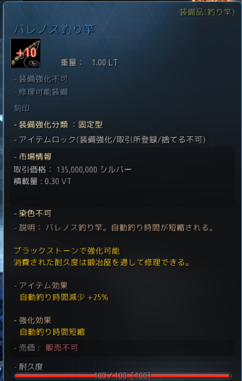 | 高 | 釣り竿 | +10 バレノス釣り竿 |